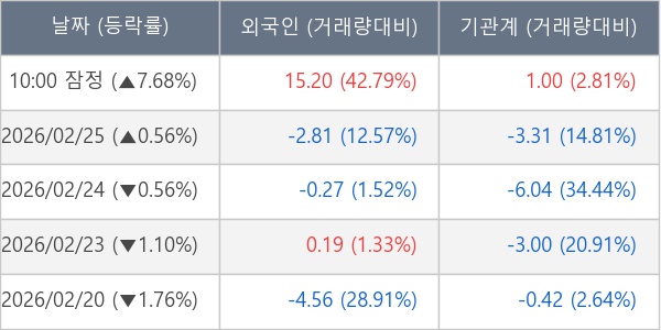 [표] 주요 기관별 순매매량 (단위 만주)