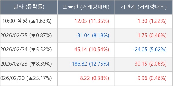 [표] 외국인ㆍ기관 순매매량 (단위 만주)