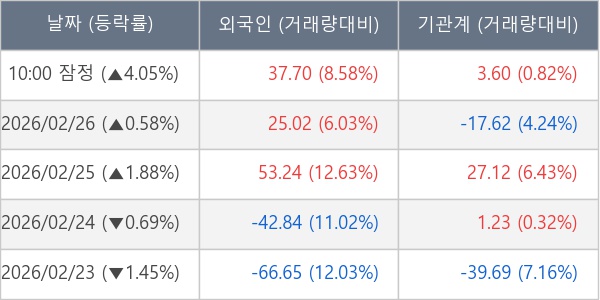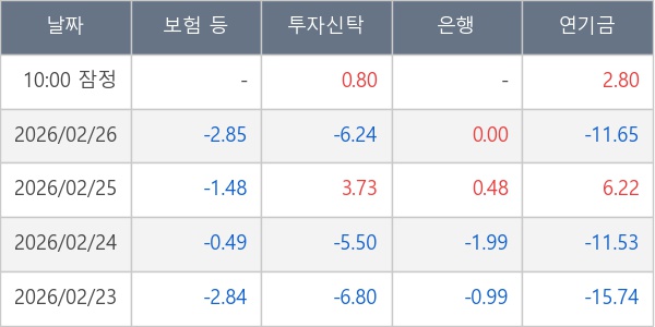 [표] 주요 기관별 순매매량 (단위 만주)