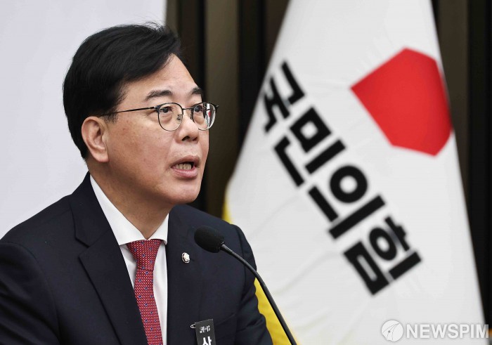[서울=뉴스핌] 윤창빈 기자 = 송언석 국민의힘 원내대표가 27일 오후 서울 여의도 국회에서 열린 의원총회에서 모두발언을 하고 있다. 2026.02.27 pangbin@newspim.com