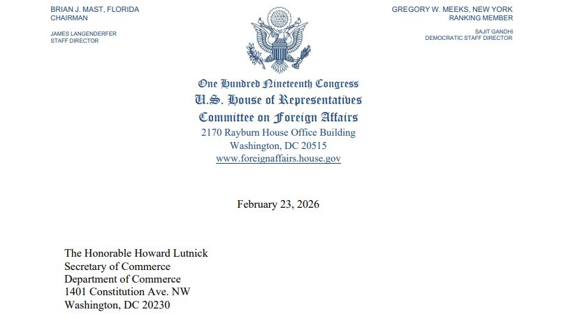 하원 외교위원회 민주당 간사인 그레고리 믹스(뉴욕) 의원은 같은당 시드니 캄라거-도브(캘리포니아) 의원과 공동으로 23일(현지시간) 하워드 러트닉 상무장관에게 공개 서한을 보내, 최근 대중 안보 조치 보류 결정의 경위와 근거를 질의했다. 두 의원은 서한에서 "상무부가 국가 안보와 미국의 기술 경쟁력 보호 의무를 소홀히 하고 있다"고 우려를 표하며, 오는 3월 6일까지 의사 결정 과정과 관련 안보 평가 내용을 의회에 보고할 것을 요구했다.