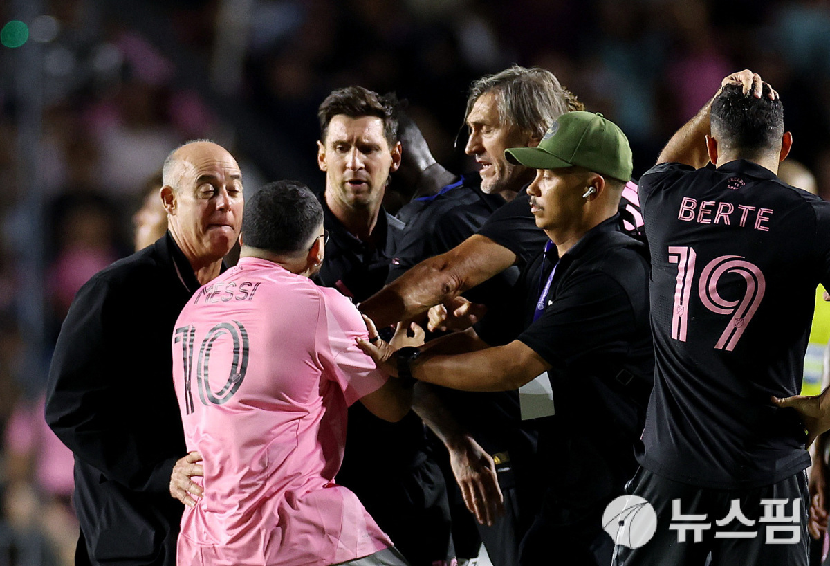 [서울=뉴스핌] 남정훈 기자 = 미국 프로축구 메이저리그사커(MLS) 인터 마이애미의 간판스타 리오넬 메시가 친선 경기 도중 관중 난입 소동에 휘말리는 아찔한 상황을 겪었다.