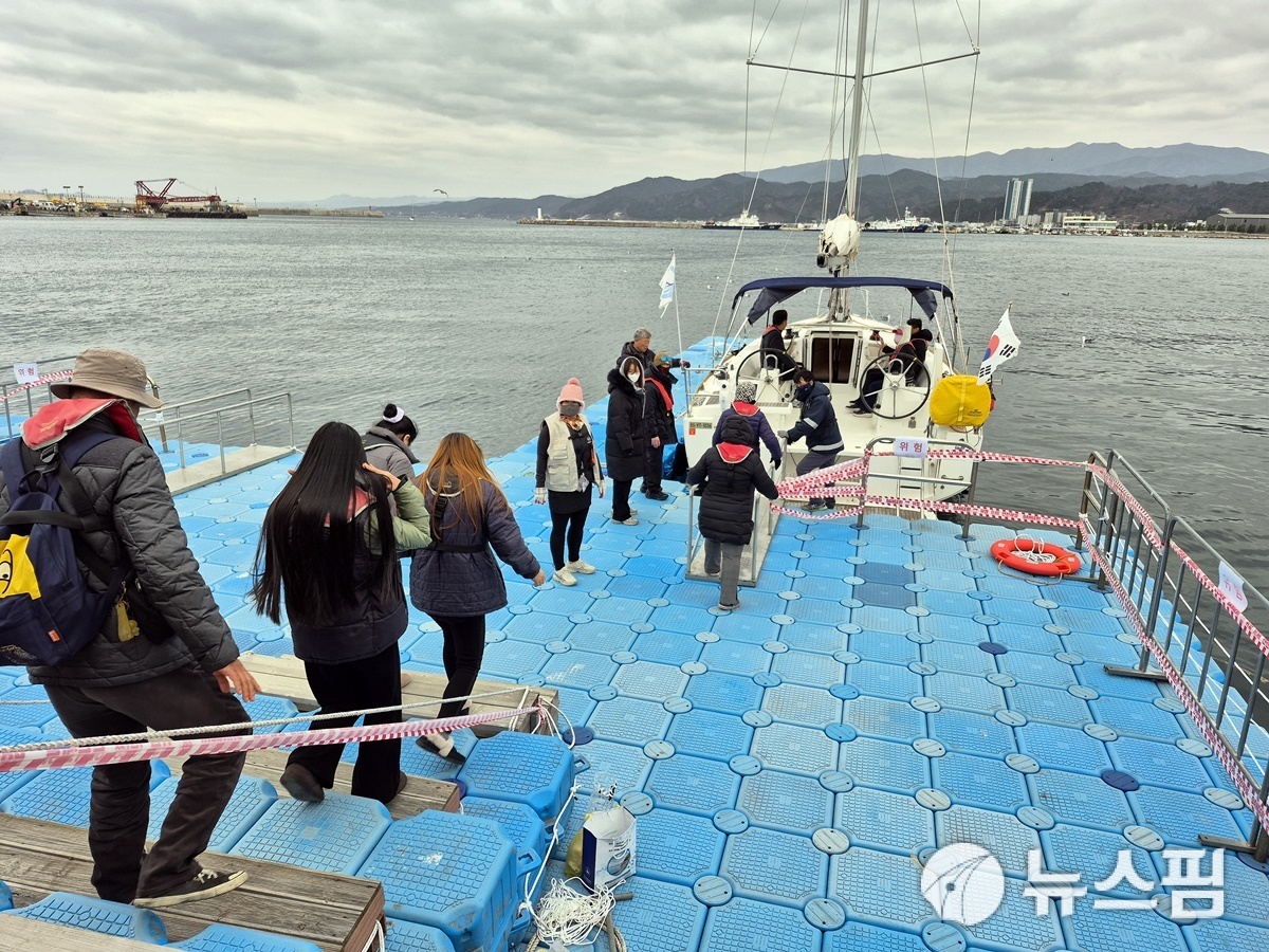 [울진=뉴스핌] 남효선 기자 = 경북 울진군의 대표 '바다먹거리 축제'인 '2026 울진대게·붉은대게축제' 3일 차인 1일, 축제장인 후포항 왕돌초 광장을 찾은 축제객들이 구명조끼를 착용하고 운영진의 안내에 따라 요트에 오르고 있다. '후포항 요트 체험' 프로그램은 울진군 요트학교가 주관해 축제 기간 무료로 운영하고 있다. 이번 축제 체험 프로그램은 11인승~17인승 요트 3척으로 운영되며 1일 800여 명의 축제객들이 참여하는 등 인기를 끌고 있다. 축제 첫날인 지난 27일부터 사흘 내내 축제객들이 밀물처럼 몰려들면서 '대박 고공 행진'을 연출하고 있는 '울진대게·붉은대게축제'는 '울진대게'와 '붉은대게'를 비롯해 풍성한 바다먹거리와 체험, 공연 프로그램을 담아 3월 2일까지 이어진다.