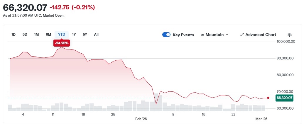 비트코인 차트, 자료=야후 파이낸스, 2026.03.02 koinwon@newspim.com