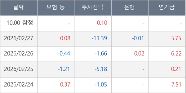 ※ 장중 매매동향은 잠정치이므로 실제 매매동향과 차이가 발생할수 있음