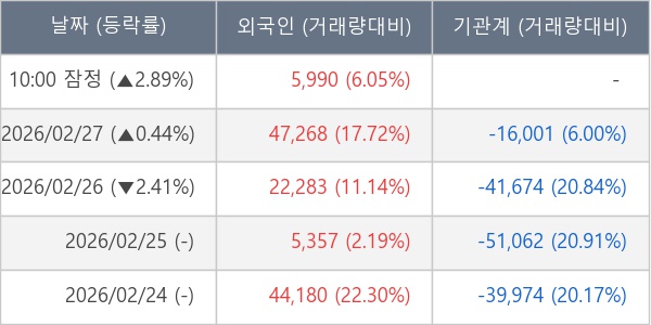 [표] 외국인ㆍ기관 순매매량 (단위 주)