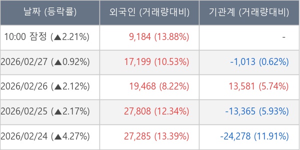 [표] 외국인ㆍ기관 순매매량 (단위 주)