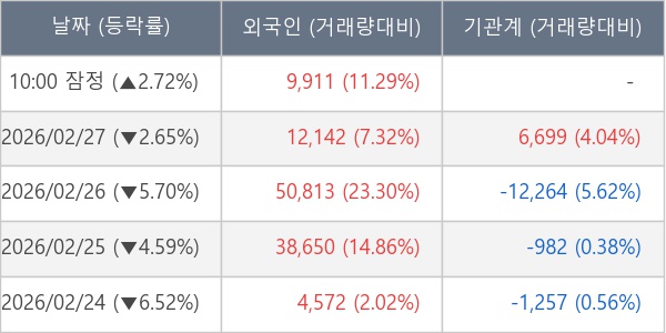 [표] 외국인ㆍ기관 순매매량 (단위 주)