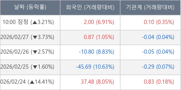 [표] 주요 기관별 순매매량 (단위 만주)