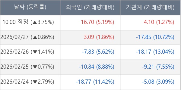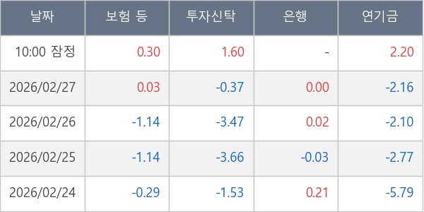 [표] 주요 기관별 순매매량 (단위 만주)