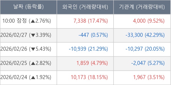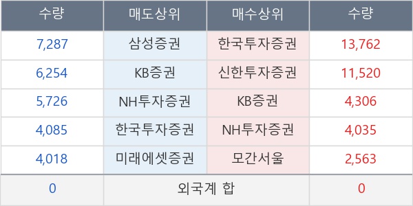 [표] 주요 기관별 순매매량 (단위 주)
