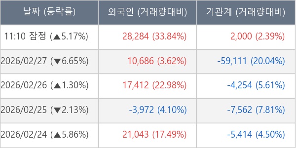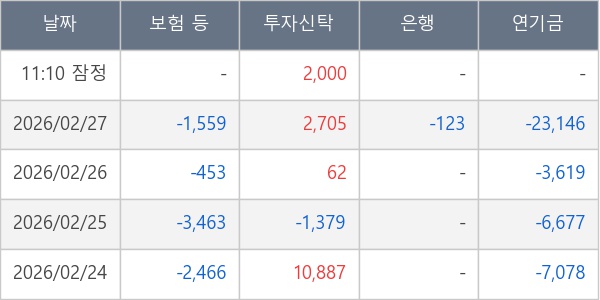 [표] 주요 기관별 순매매량 (단위 주)