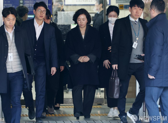 [서울=뉴스핌] 정일구 기자 = '1억 공천헌금' 의혹을 받는 김경 전 서울시의원이 3일 오후 서울 서초구 서울중앙지방법원에서 열린 구속 전 피의자 심문(영장실질심사)을 마친 뒤 법원을 나서고 있다. 2026.03.03 mironj19@newspim.com