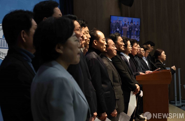 [서울=뉴스핌] 윤창빈 기자 = 이인선 국민의힘 의원을 비롯한 대구-경북지역 의원들이 3일 오후 서울 여의도 국회에서 대구·경북 통합 관련 기자회견을 하고 있다. 2026.03.03 pangbin@newspim.com