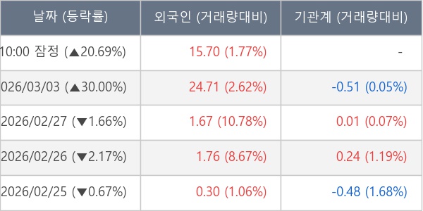 [표] 외국인ㆍ기관 순매매량 (단위 만주)