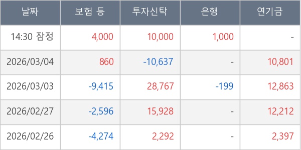 [표] 주요 기관별 순매매량 (단위 주)