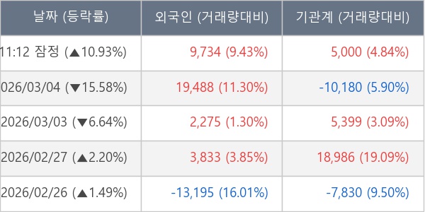 [표] 외국인ㆍ기관 순매매량 (단위 주)