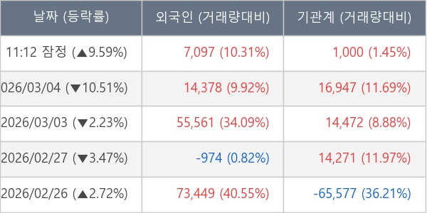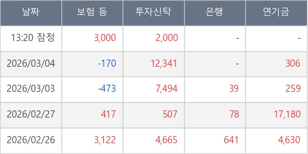 [표] 주요 기관별 순매매량 (단위 주)