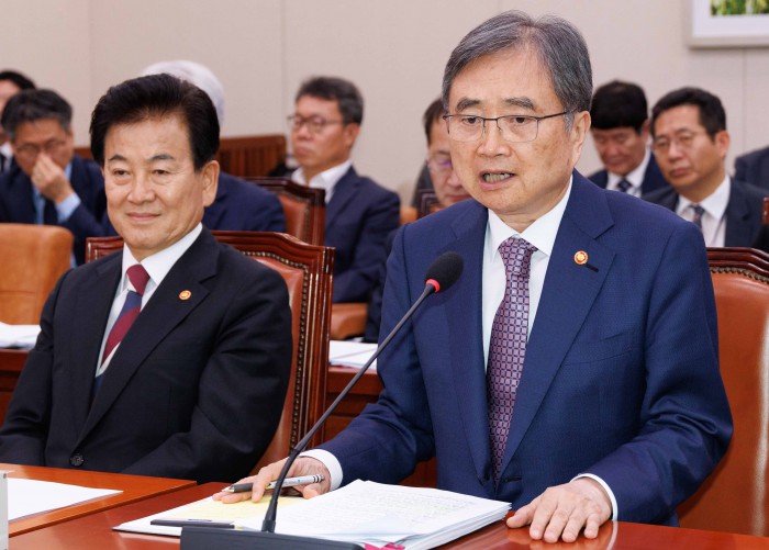图为韩国外交部长官赵显8日出席在首尔汝矣岛国会的质询。【图片=纽斯频通讯社】