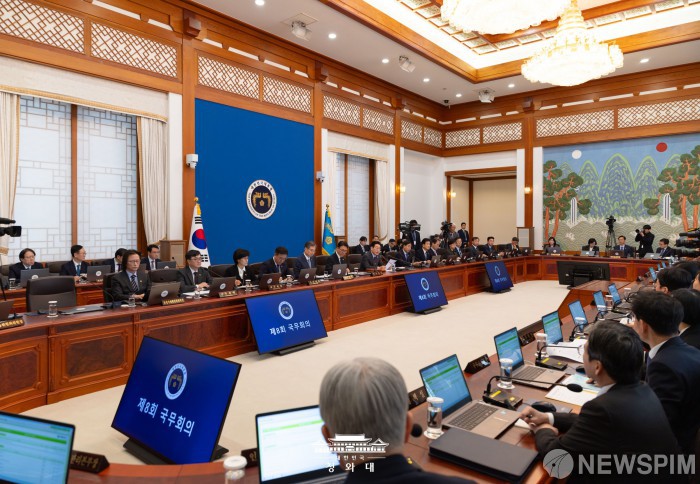 [서울=뉴스핌] 이재명 대통령이 지난 5일 서울 청와대에서 제8회 국무회의를 주재하고 있다. [사진=청와대] 2026.03.06 photo@newspim.com