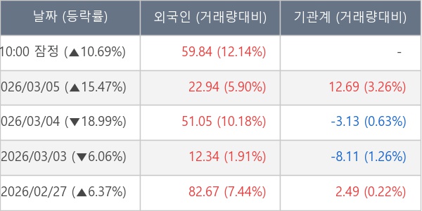 [표] 외국인ㆍ기관 순매매량 (단위 만주)