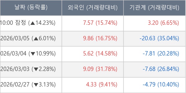 [표] 외국인ㆍ기관 순매매량 (단위 만주)