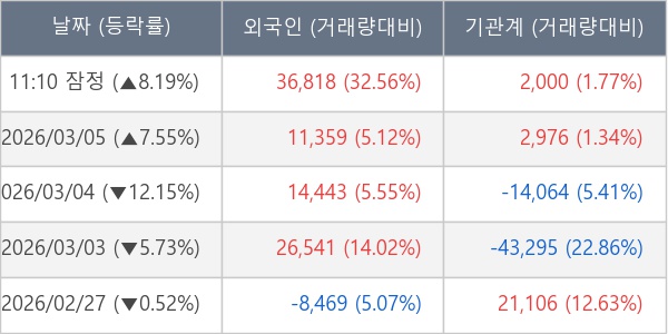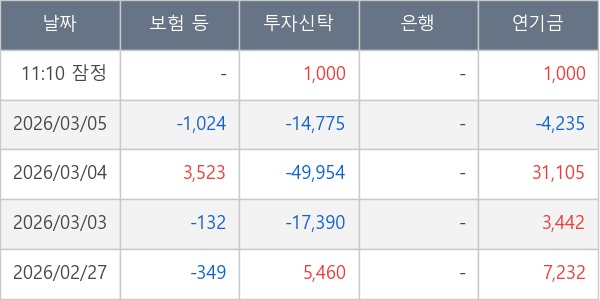 [표] 주요 기관별 순매매량 (단위 주)