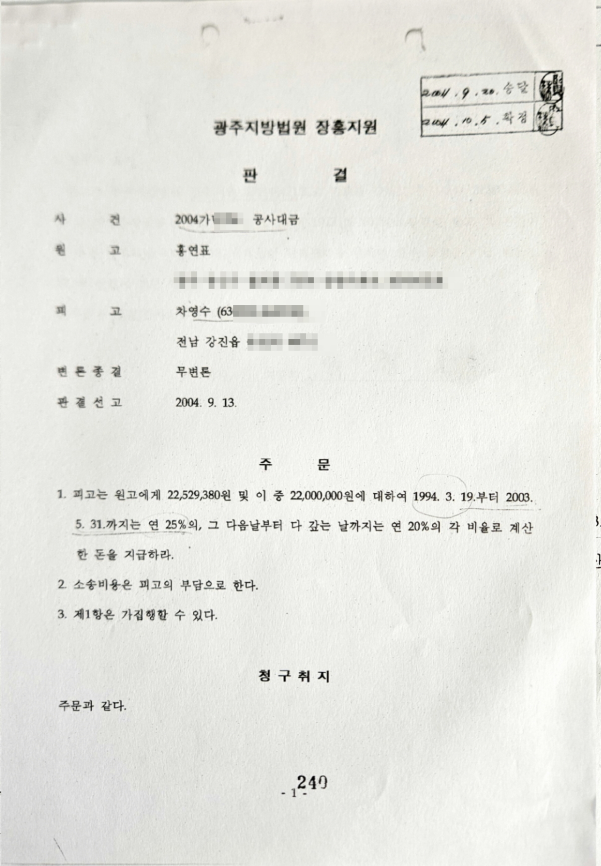 그는 "당시 사업때문에 주소는 강진에 두고 서울에서 생활하다 보니 법원 등기·서류를 제때 확인하지 못해 이자가 불어나, 1800만 원으로 알고 있던 금액이 1억 5300만 원까지 늘었다"고 말했다.
