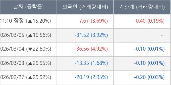 [표] 주요 기관별 순매매량 (단위 만주)