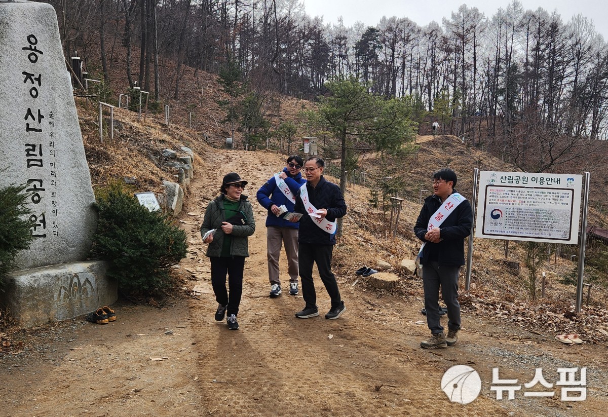 [청주=뉴스핌] 백운학 기자 = 산림조합중앙회 충북본부는 청주시 상당구 용정동 김수녕양궁장 일원에서 청주산림조합과 함께 산불예방 캠페인을 했다.