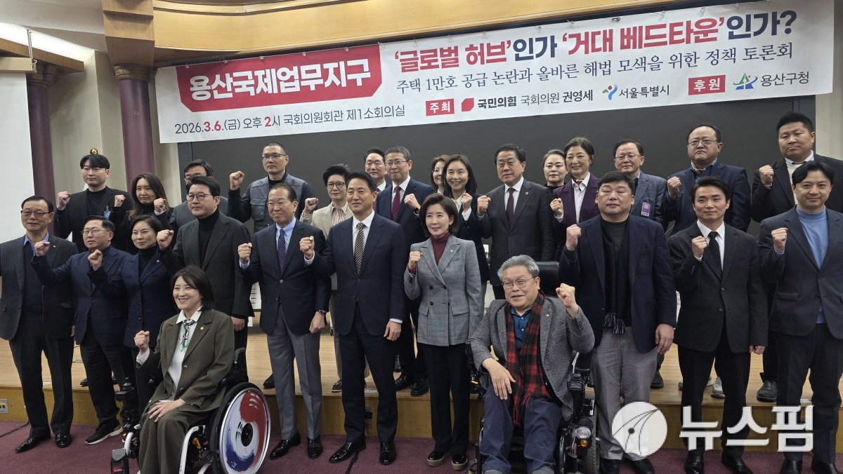 6일 오후 서울 여의도 국회의원회관 제1소회의실에서는 권영세 국민의힘 의원 주최, 서울특별시 공동 주최로 '용산국제업무지구 글로벌 허브인가 거대 베드타운인가' 정책 토론회가 열렸다. 이날 토론회는 최근 정부가 발표한 주택 공급 대책이 용산국제업무지구의 본래 조성 취지를 훼손하고 있다는 지역 사회와 전문가들의 우려가 커지는 가운데 올바른 해법을 모색하기 위해 마련됐다.