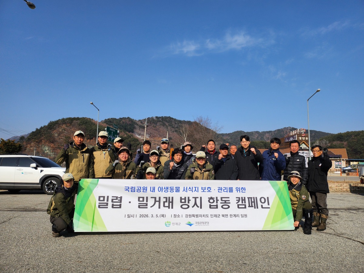 [속초=뉴스핌] 이형섭 기자 = 국립공원공단 설악산국립공원사무소는 지난 5일 강원도 인제군 북면 한계리 모란골 일원에서 유관기관과 함께 불법 엽구 수거 및 야생동물 보호 캠페인을 실시했다고 6일 밝혔다.