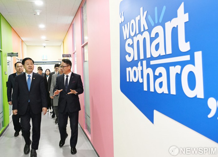 [서울=뉴스핌]구윤철 부총리 겸 재정경제부 장관이 6일 청년 재도전 창업 관련 현장방문으로 대전스타트업파크를 방문,관계자로부터 재도전 창업지원 추진현황 및 성공사례 설명을 듣고 있다.[사진=재정경제부] 2026.03.06 photo@newspim.com