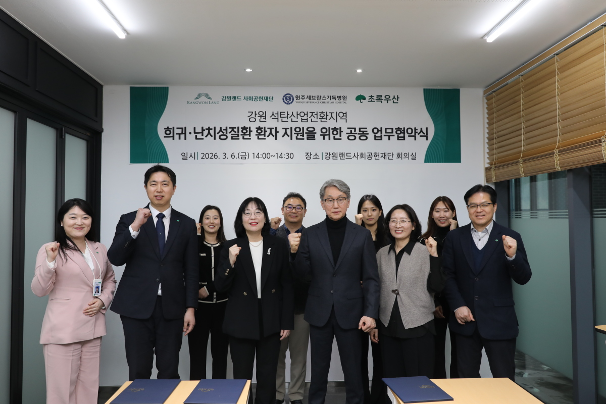 이번 협약은 정선·태백·영월·삼척 등 강원 석탄산업전환지역 내 중위소득 200% 이하 희귀·난치성질환 가정을 대상으로 의료·생활·정서를 아우르는 지원체계를 마련해, 장기 치료로 인한 경제적 부담과 돌봄 부담을 완화하기 위해 기획됐다.