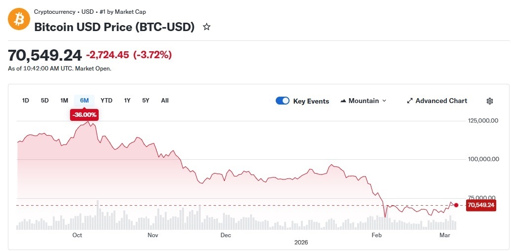 비트코인 차트, 자료=야후 파이낸스, 2026.03.06 koinwon@newspim.com