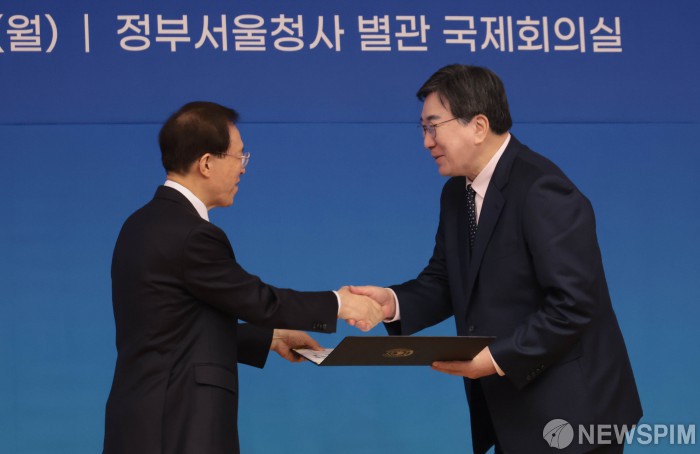 [서울=뉴스핌] 이길동 기자 = 이석연 국민통합위원장이 9일 오전 서울 종로구 정부서울청사에서 열린 국민통합위원회 전체회의에서 전지명 국민통합위원에게 위촉장을 전달하고 있다.2026.03.09. gdlee@newspim.com