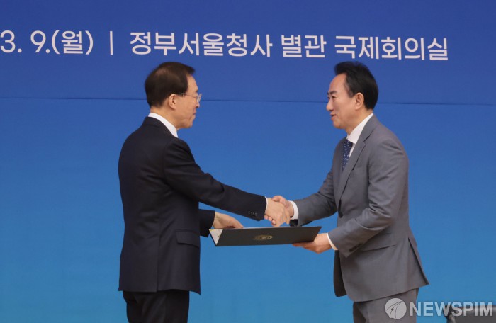[서울=뉴스핌] 이길동 기자 = 이석연 국민통합위원장이 9일 오전 서울 종로구 정부서울청사에서 열린 국민통합위원회 전체회의에서 김명진 국민통합위원에게 위촉장을 전달하고 있다.2026.03.09. gdlee@newspim.com