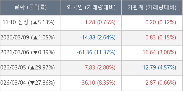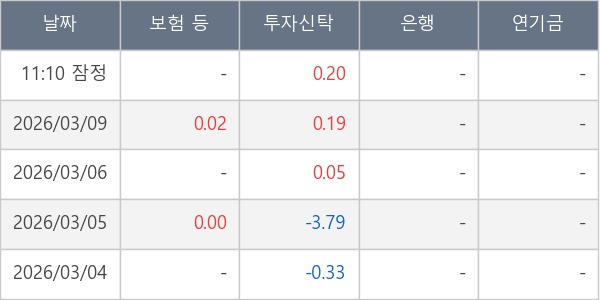 [표] 주요 기관별 순매매량 (단위 만주)