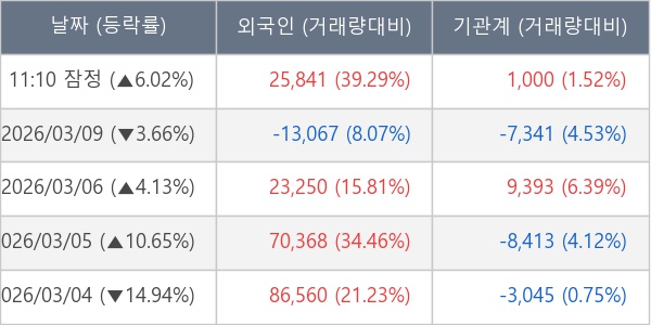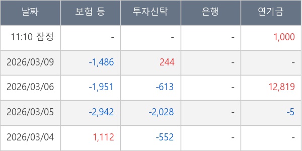 [표] 주요 기관별 순매매량 (단위 주)