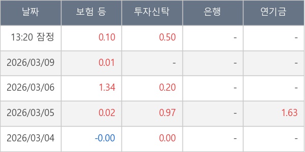 [표] 주요 기관별 순매매량 (단위 만주)