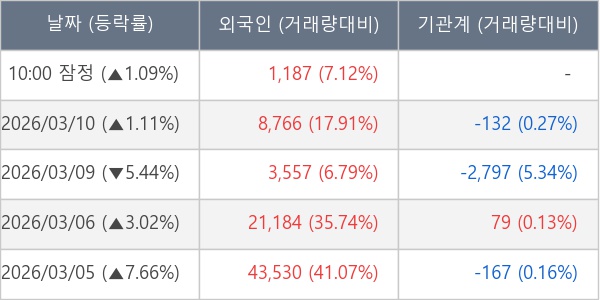 [표] 외국인ㆍ기관 순매매량 (단위 주)
