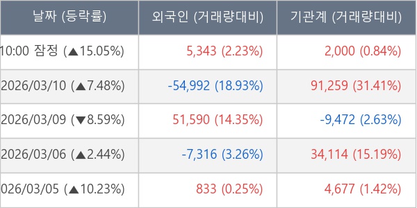 [표] 주요 기관별 순매매량 (단위 주)