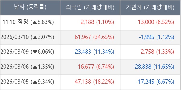 [표] 외국인ㆍ기관 순매매량 (단위 주)
