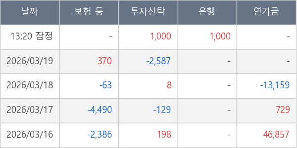 ※ 장중 매매동향은 잠정치이므로 실제 매매동향과 차이가 발생할수 있음
