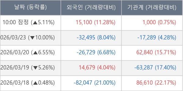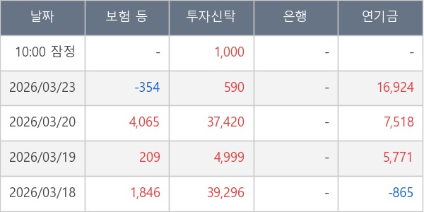 [표] 주요 기관별 순매매량 (단위 주)