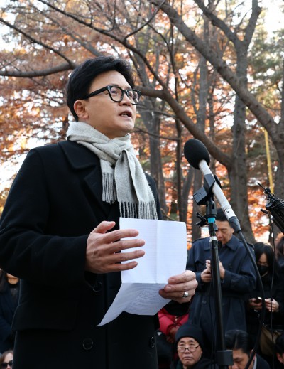 국회에서 비상계엄 1년 기자회견하는 한동훈 국민의힘 전 대표