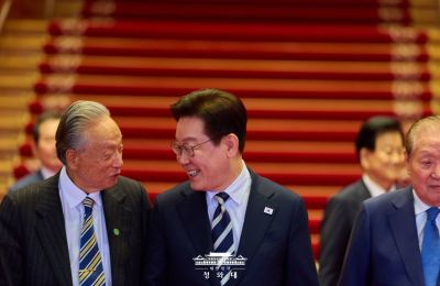 오찬 간담회 향하는 이재명 대통령 - 더불어민주당 상임고문단