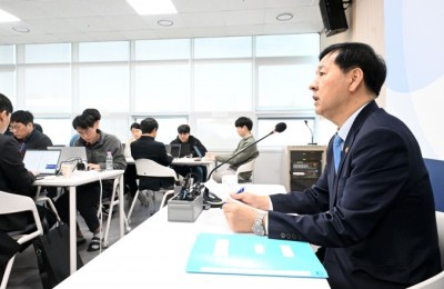 브리핑 앞두고 인사하는 김민재 중앙재난안전대책본부 제1차장