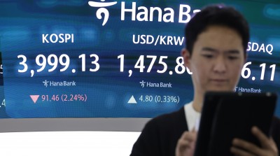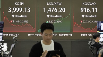 코스피 4000선 2주 만에 붕괴… 3999.13 마감