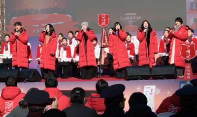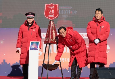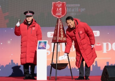 자선냄비에 성금 기부하는 허은아 대통령실 국민통합비서관